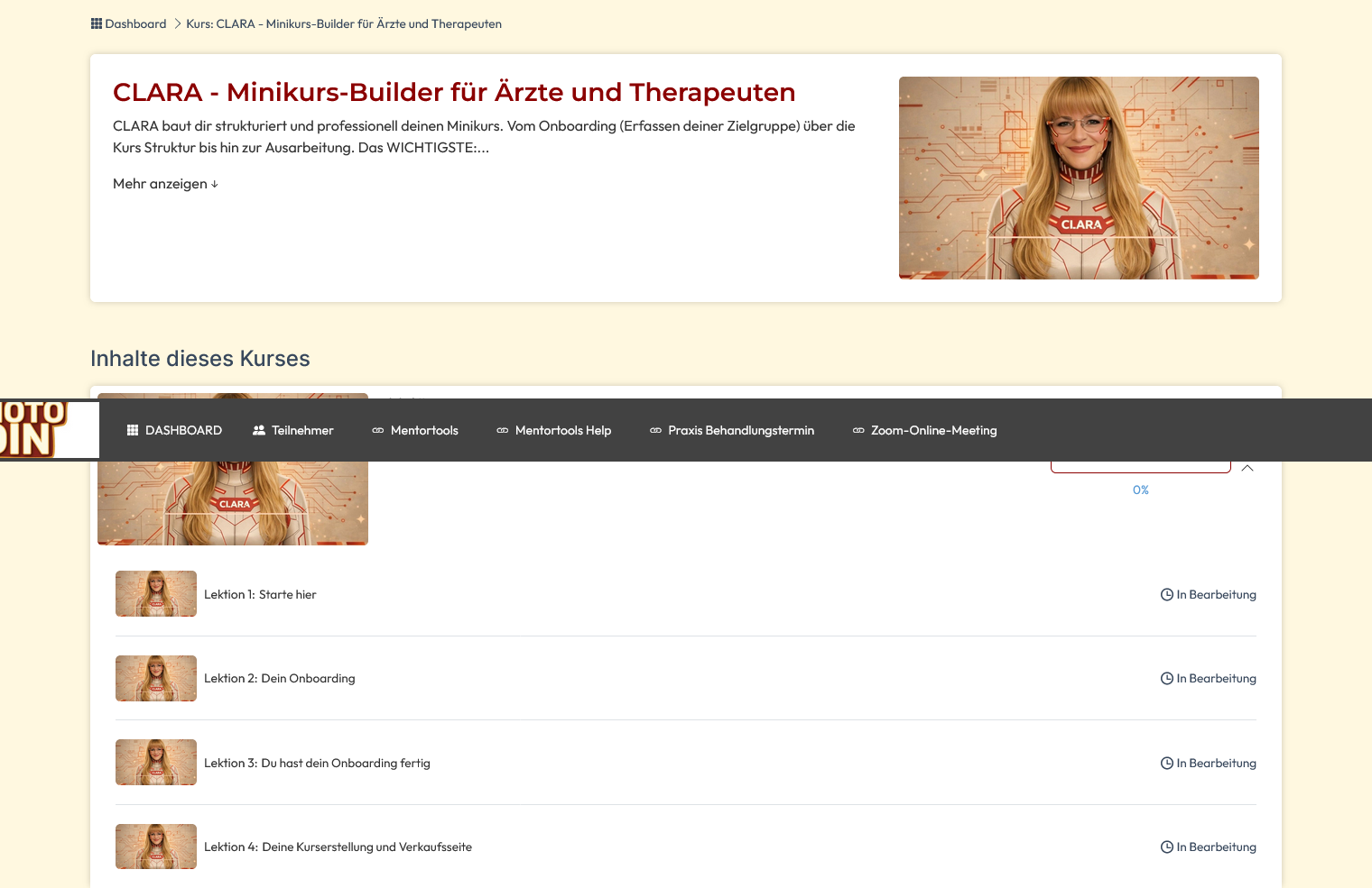 … du eine logische Kursstruktur hättest, die medizinisch Sinn ergibt?