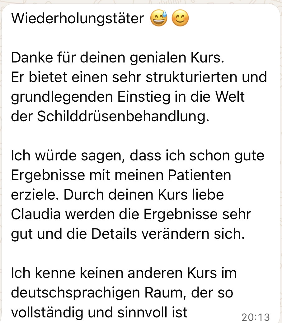 In nur 20 Wochen erhältst du ein praxisbewährtes System, das dich vom unsicheren Behandler zum gefragten Schilddrüsen-Experten mit vollem Terminkalender und vielen Weiterempfehlungen  macht.